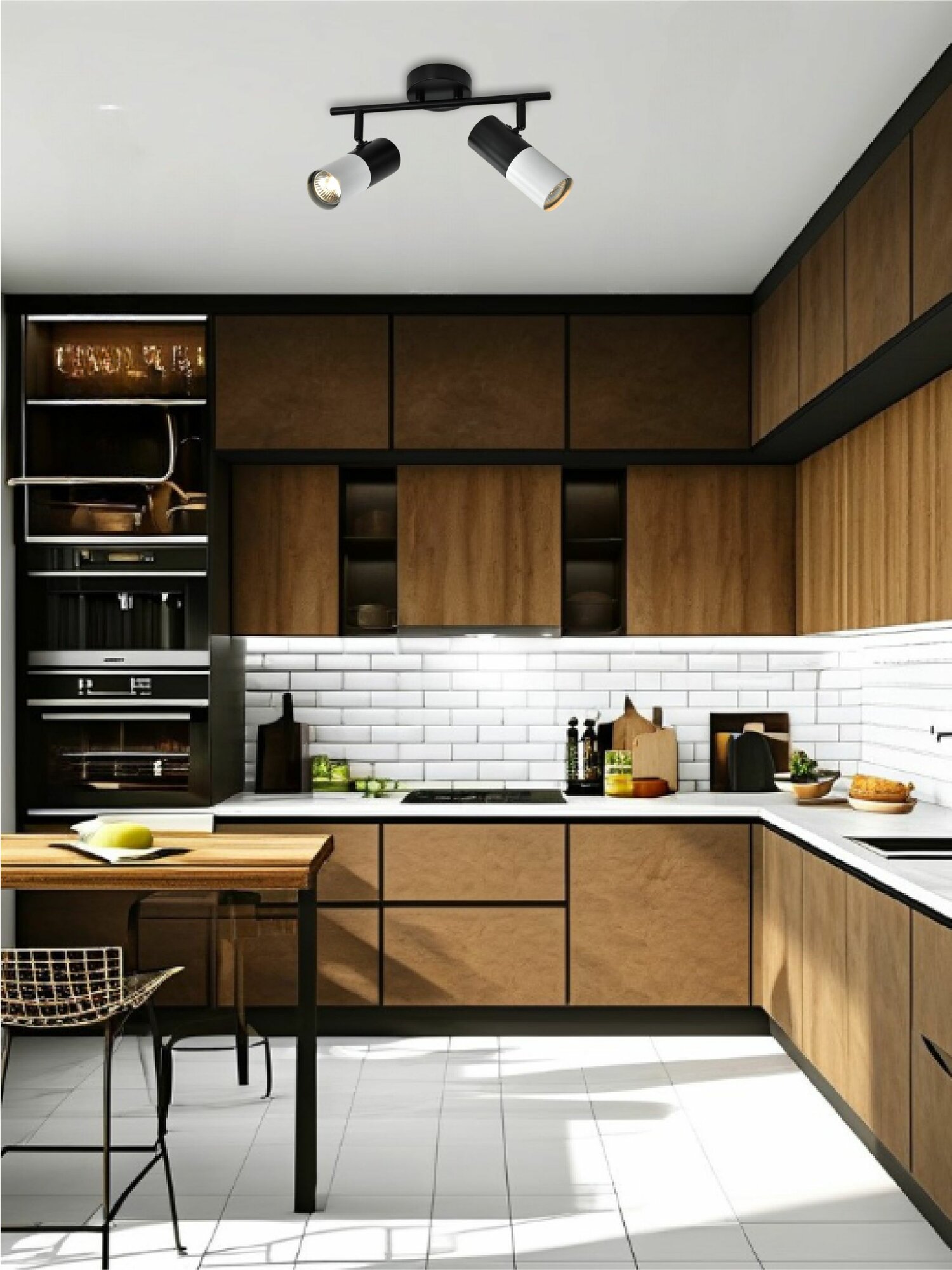 Спот настенный светильник светодиодный белый/черный 2x50W GU10