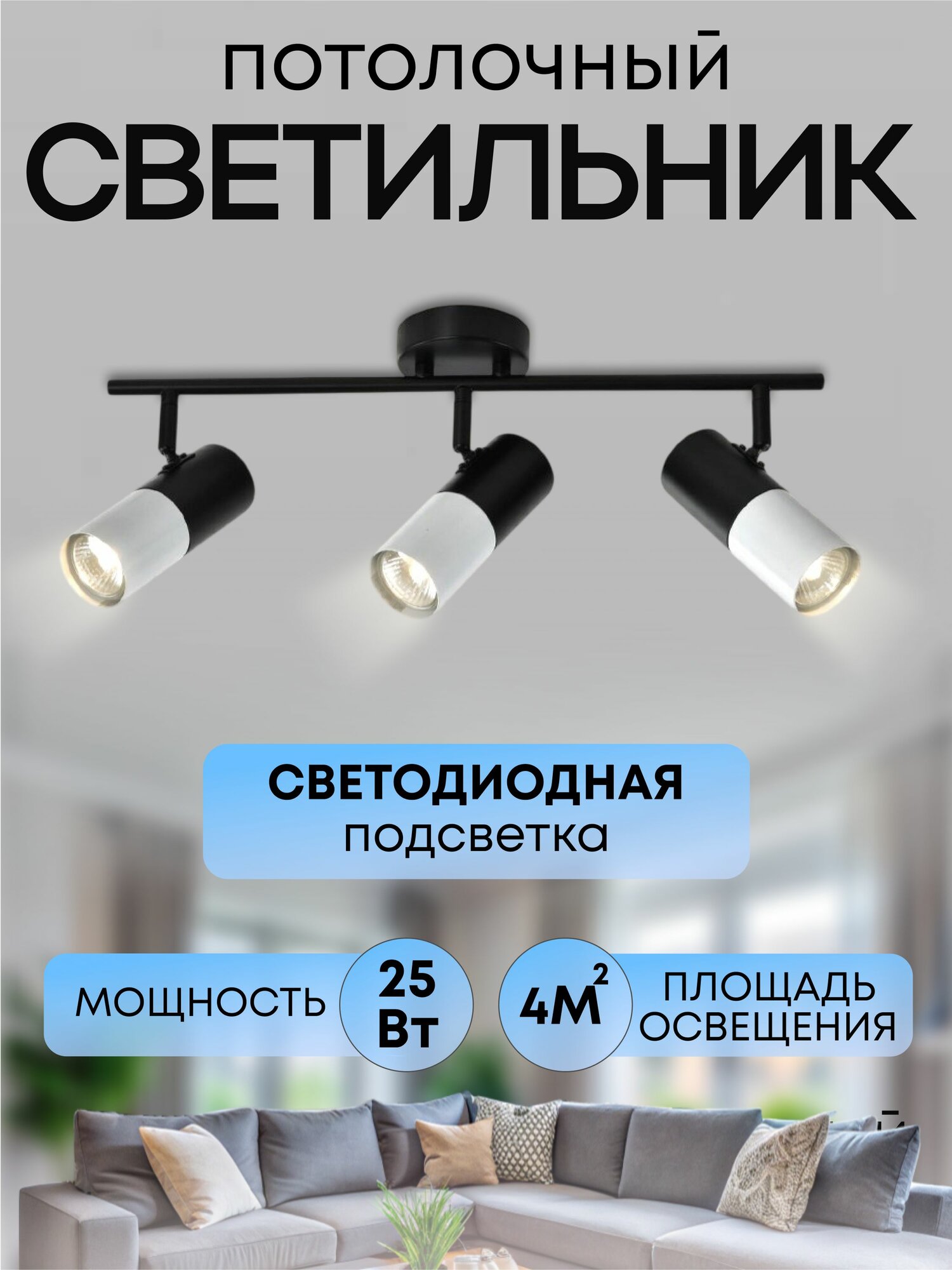 Спот настенный светильник светодиодный белый/черный 3x50W GU10
