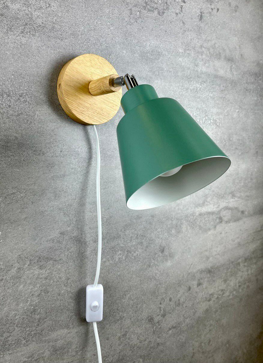 Купить Светильник настенный бра с выключателем под лампу Е27, зеленый/дерево