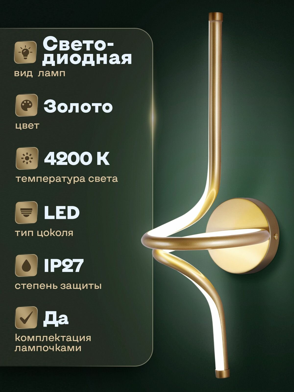 Бра настенные светодиодные, светильник настенный ЭлисСвет 5122/1W GD интересное:
