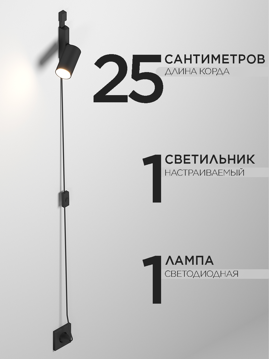 Настенный бра Cordini GU 10, нейтральный белый свет 4000K, 1м, 1 светильник, черный