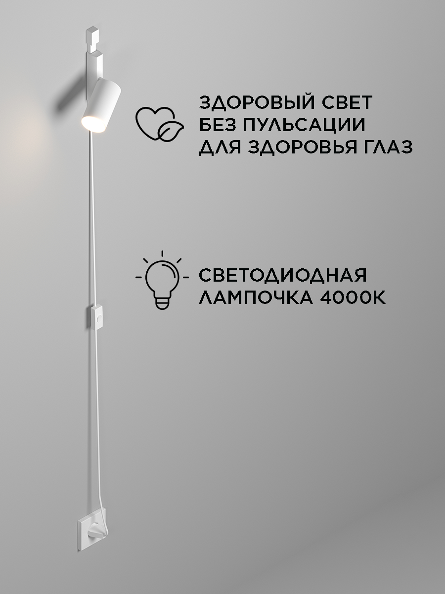 Настенный бра Cordini GU 10, нейтральный белый свет 4000K, 1м светильник, белый