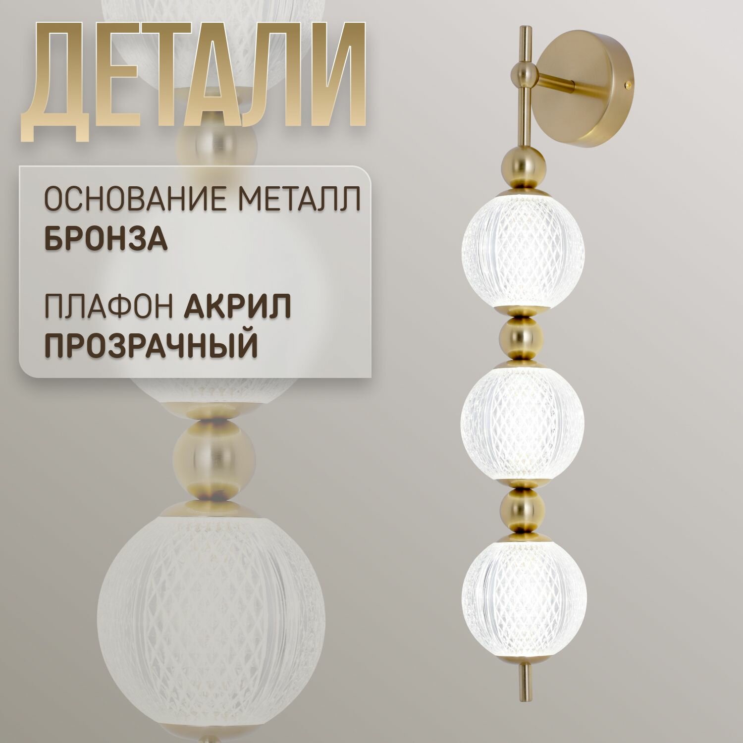 Бра настенные ЭлисСвет светильник светодиодный с тремя круглыми лампами, золотой, 20136-B LS/1W GD