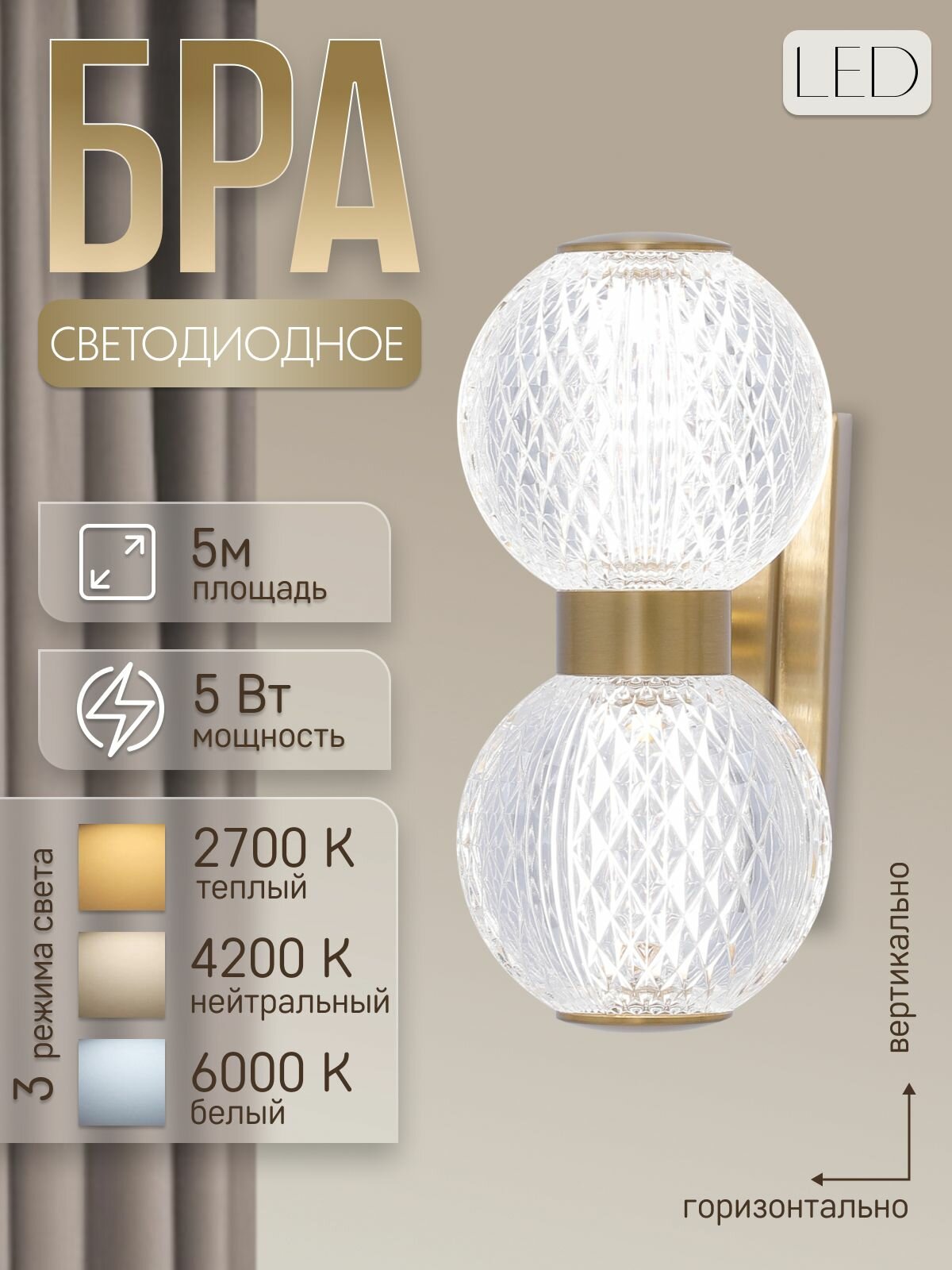 Бра настенные ЭлисСвет светильник светодиодный с круглыми лампами, золотой, 20136-C LS/1W GD
