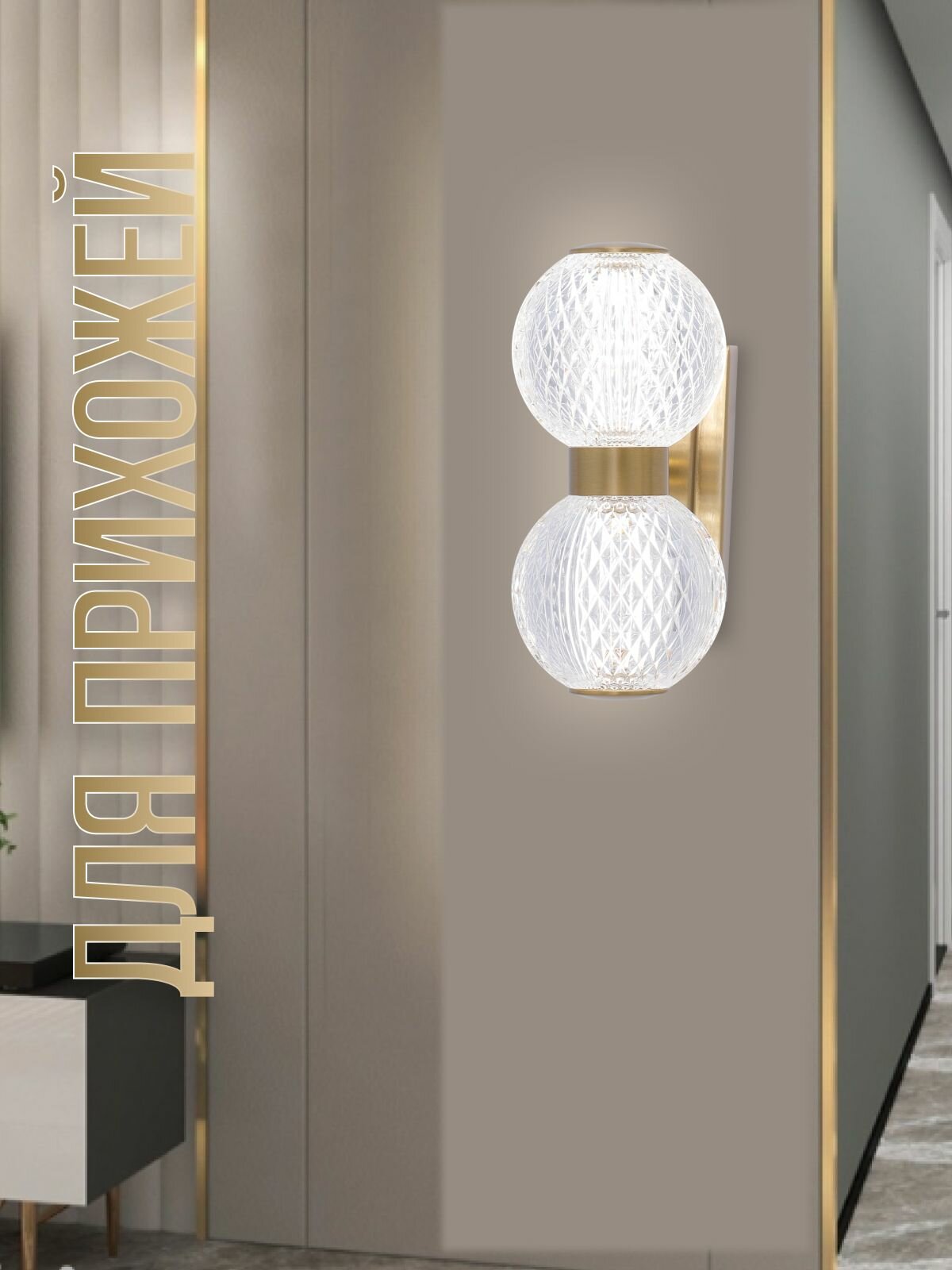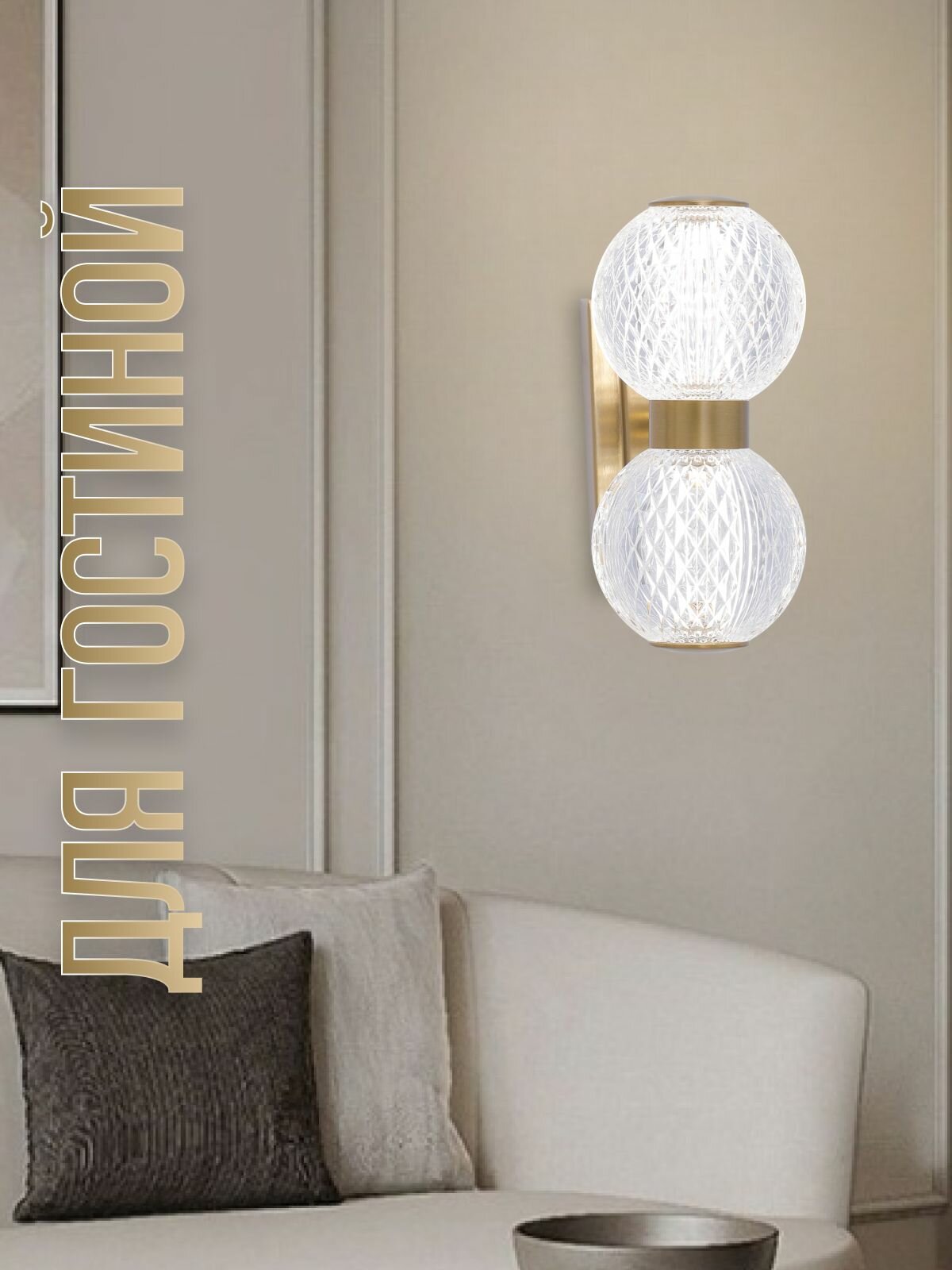 Бра настенные ЭлисСвет светильник светодиодный с двумя круглыми лампами, золотой, 20136-A LS/1W GD интересное: