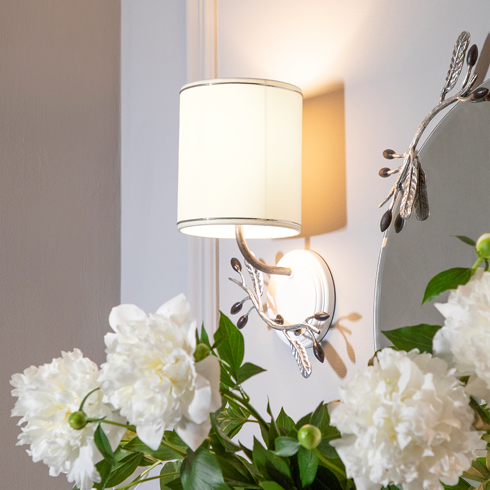 Купить Светильник настенный Bogacho Oliva Branch левый белый с серым абажуром