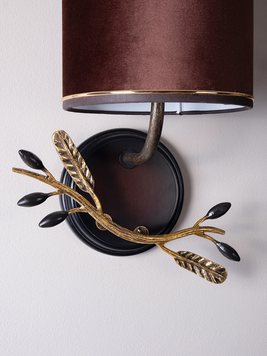 Светильник настенный Bogacho Oliva Branch левый коричневый с шоколадным абажуром