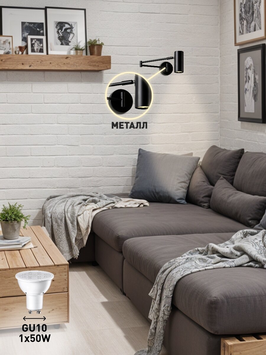 Бра поворотный Lamplandia L1636 CODO BLACK, GU10*1 макс 50Вт интересное: