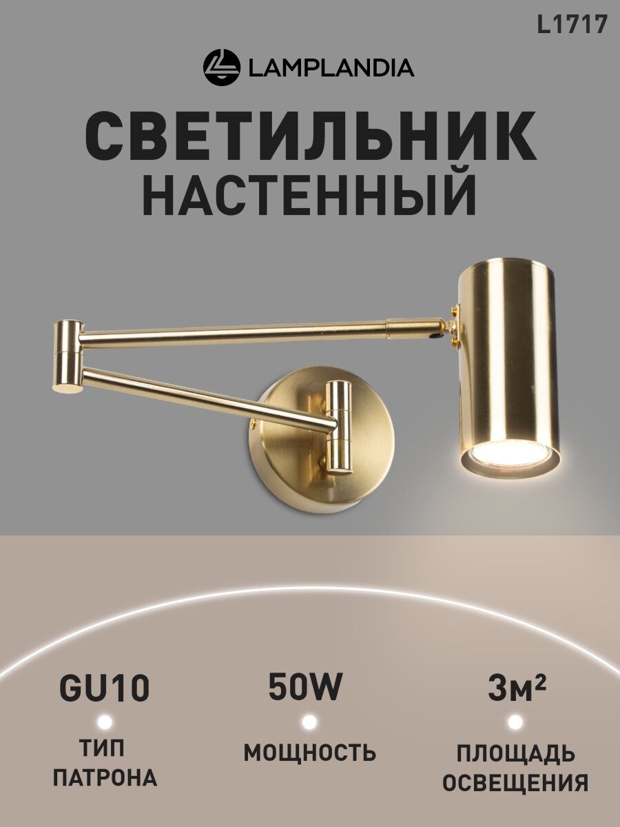 Бра поворотный Lamplandia L1717 CODO BRASS, GU10*1 макс 50Вт интересное: