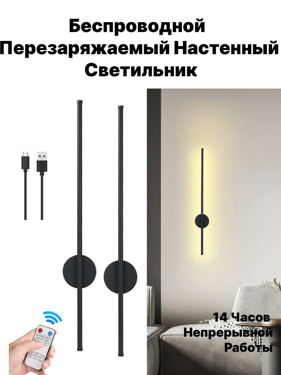 Светильник беспроводной, светодиодный, 80 см, от аккумулятора интересное: