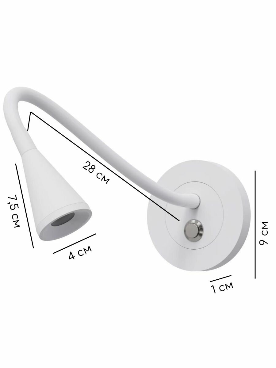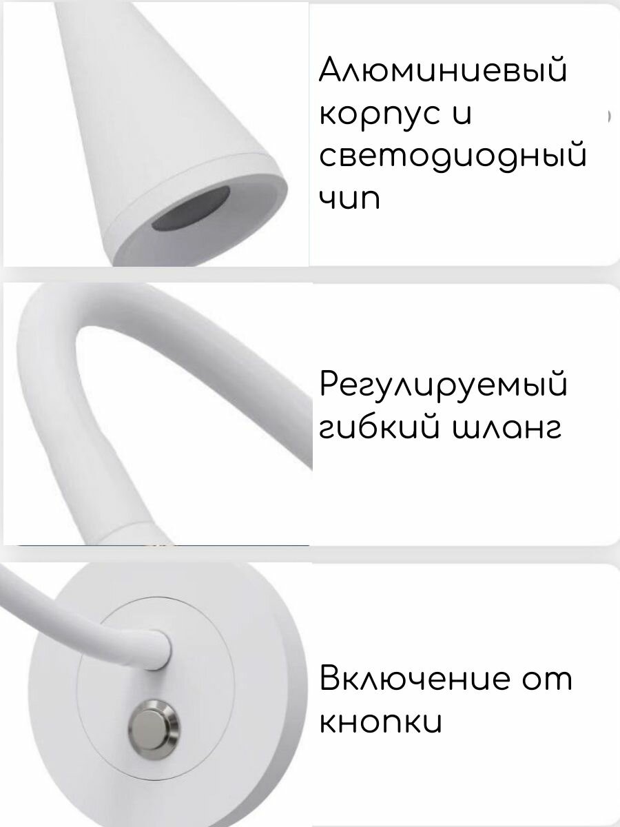 Светодиодная настенная лампа с выключателем, Бра гибкий для спальни, гостиной, кухни Wogow Белый