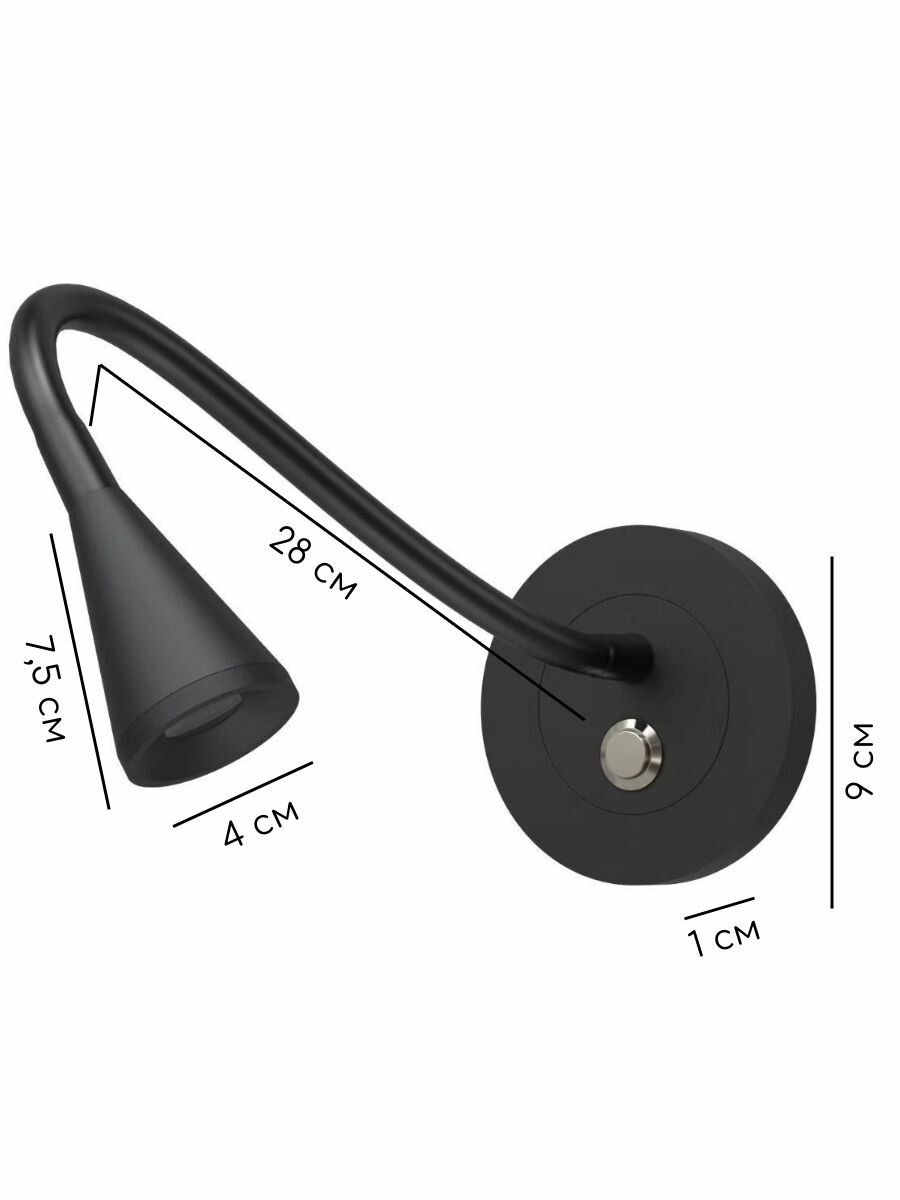 Светодиодная настенная лампа с выключателем, Бра гибкий для спальни, гостиной, кухни Wogow Черный