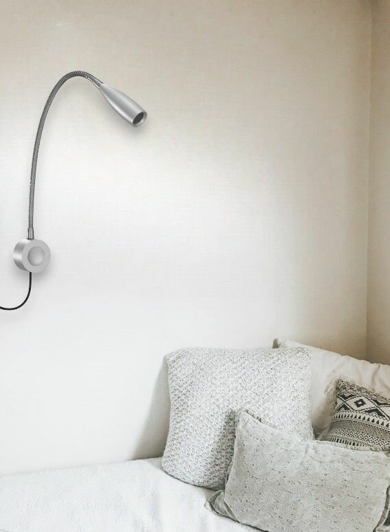 Светодиодная настенная лампа с выключателем, Бра гибкий для спальни, гостиной, кухни Wogow Серебро