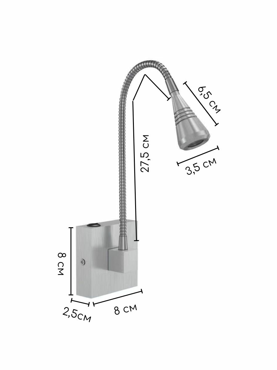 Светодиодная настенная лампа с выключателем, Бра гибкий для спальни, гостиной, кухни Wogow Серебро