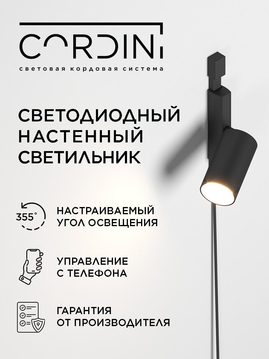 Настенный бра Cordini GU 10, умная лампочка RGB с Wi-Fi, Яндекс Алисой, Марусей, Google Home, 1м, 1 светильник, черный