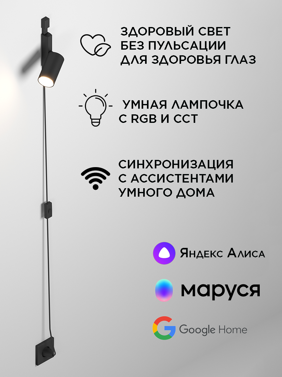 СохранитьНастенный бра Cordini GU 10, умная лампочка RGB с Wi-Fi, Яндекс Алисой, Марусей, Google Home, 0.25м, 1 светильник, черный интересное: