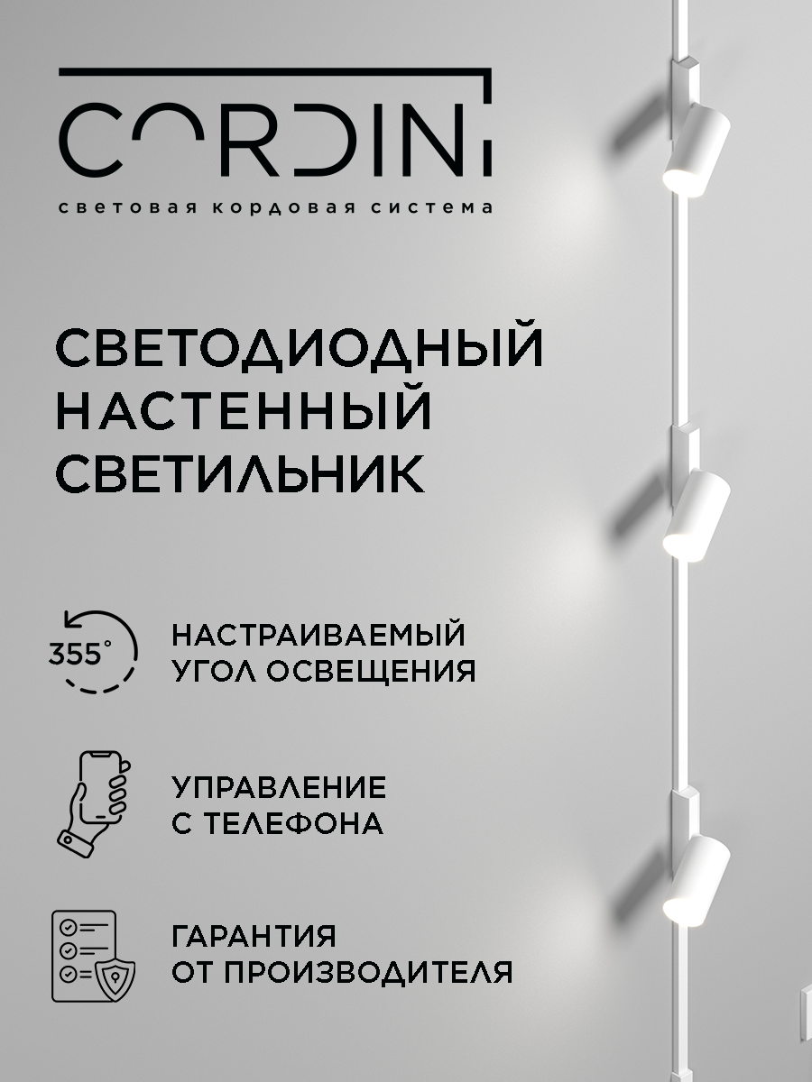 Настенный бра Cordini GU 10, умная лампочка RGB с Wi-Fi, Яндекс Алисой, Марусей, Google Home, 1м, 1 светильник, белый