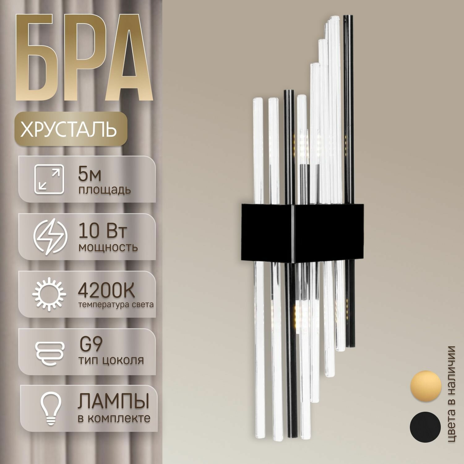 Настенный светильник бра хрустальное 1200 BG/2W BK интересное: