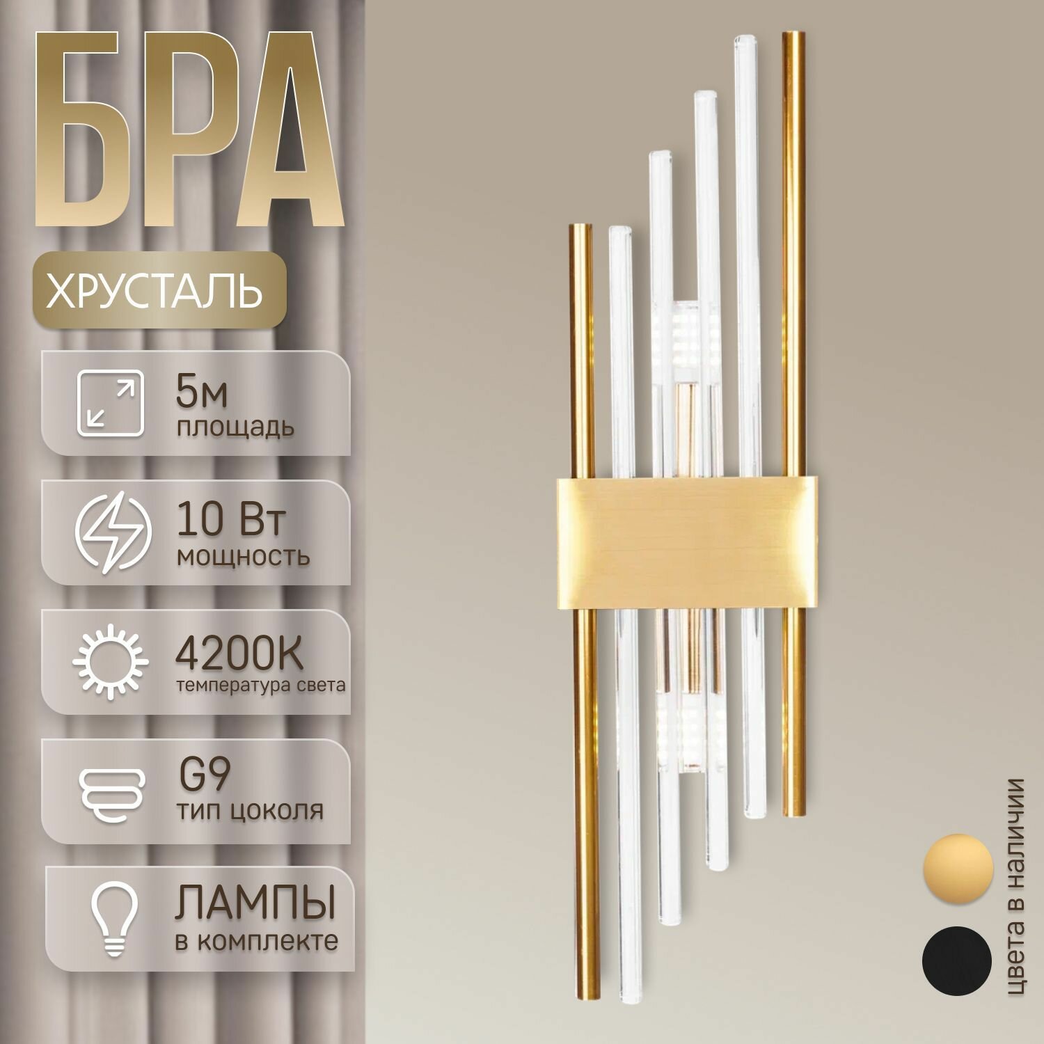 Настенный светильник бра хрустальное 1200 BG/2W BK