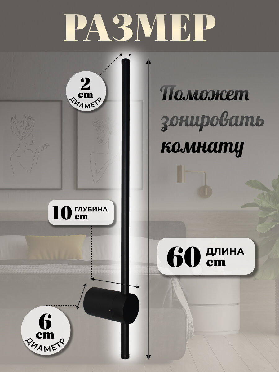 Светильник настенный светодиодный бра черный, 60 см, прямой LED интересное: