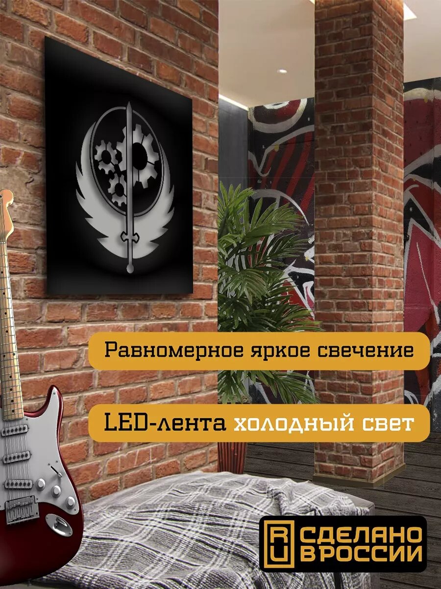 Настенный светильник панно игра Fallout (Фолаут, братство стали, постапокалипсис, орден) - 2913 интересное: