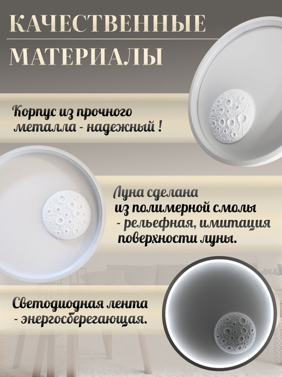 Настенный светодиодный светильник "Луна", искусственный камень, металл, белый интересное: