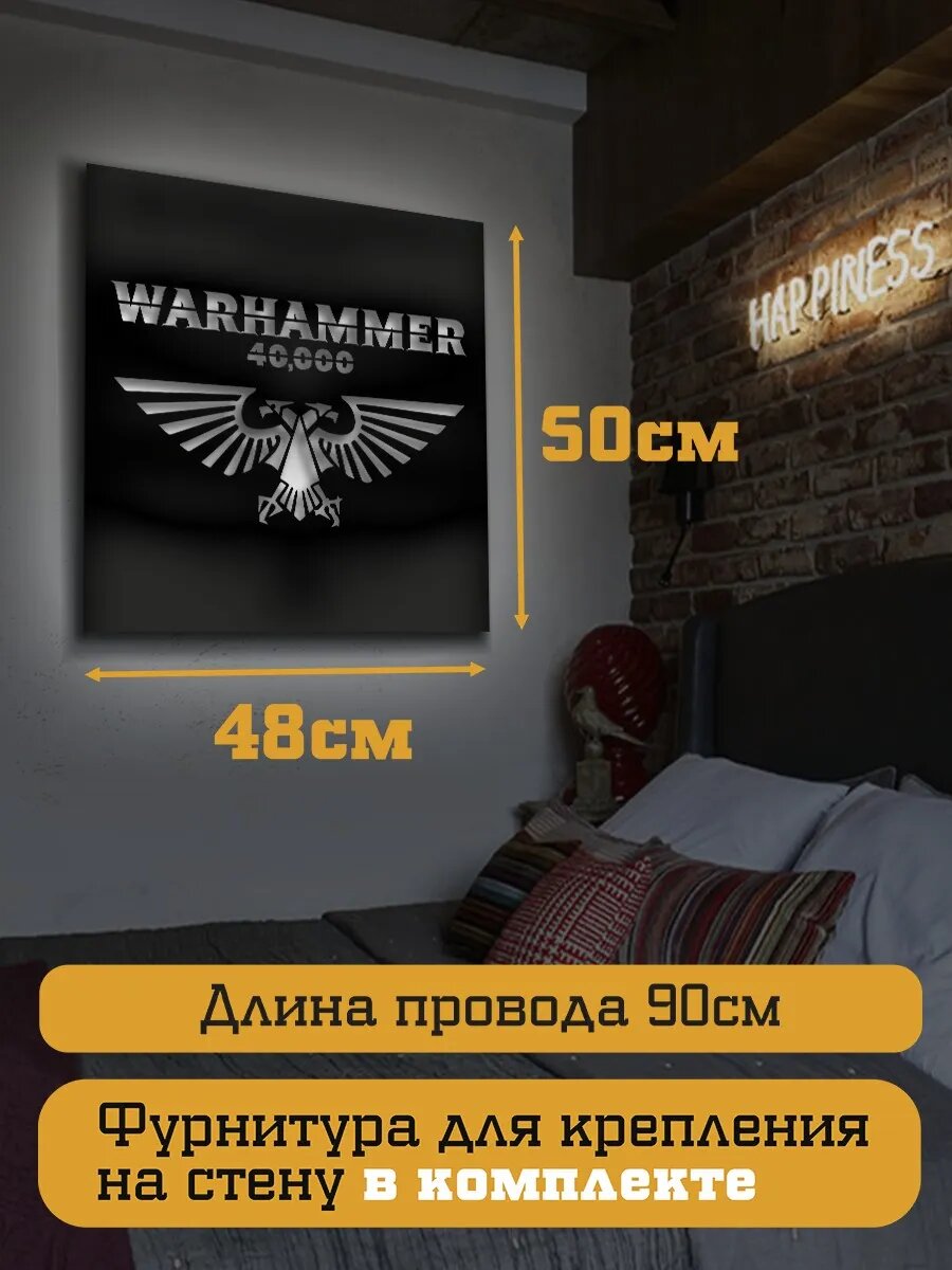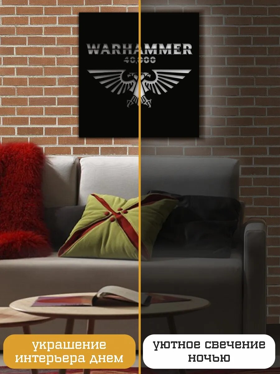 Настенный светильник панно игра Вархаммер 40к (warhammer 40000, эмблема, кулак императора, орден, космодесант) - 2910