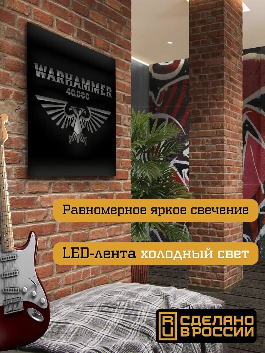 Настенный светильник панно игра Вархаммер 40к (warhammer 40000, орден, космодесант, белые шрамы) - 2905