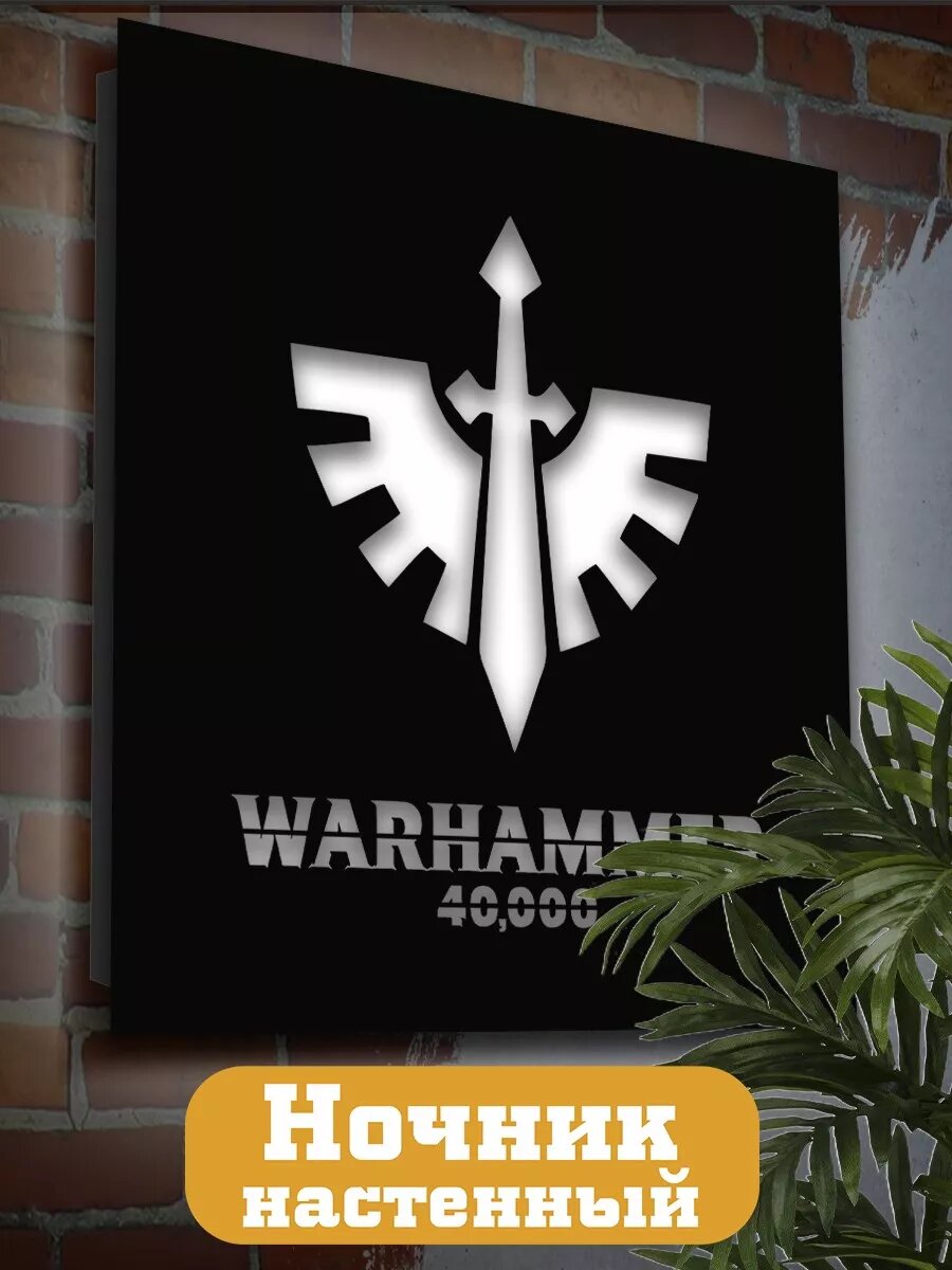 Настенный светильник панно игра Вархаммер 40к (warhammer 40000, эмблема, кулак императора, орден, космодесант) - 2910