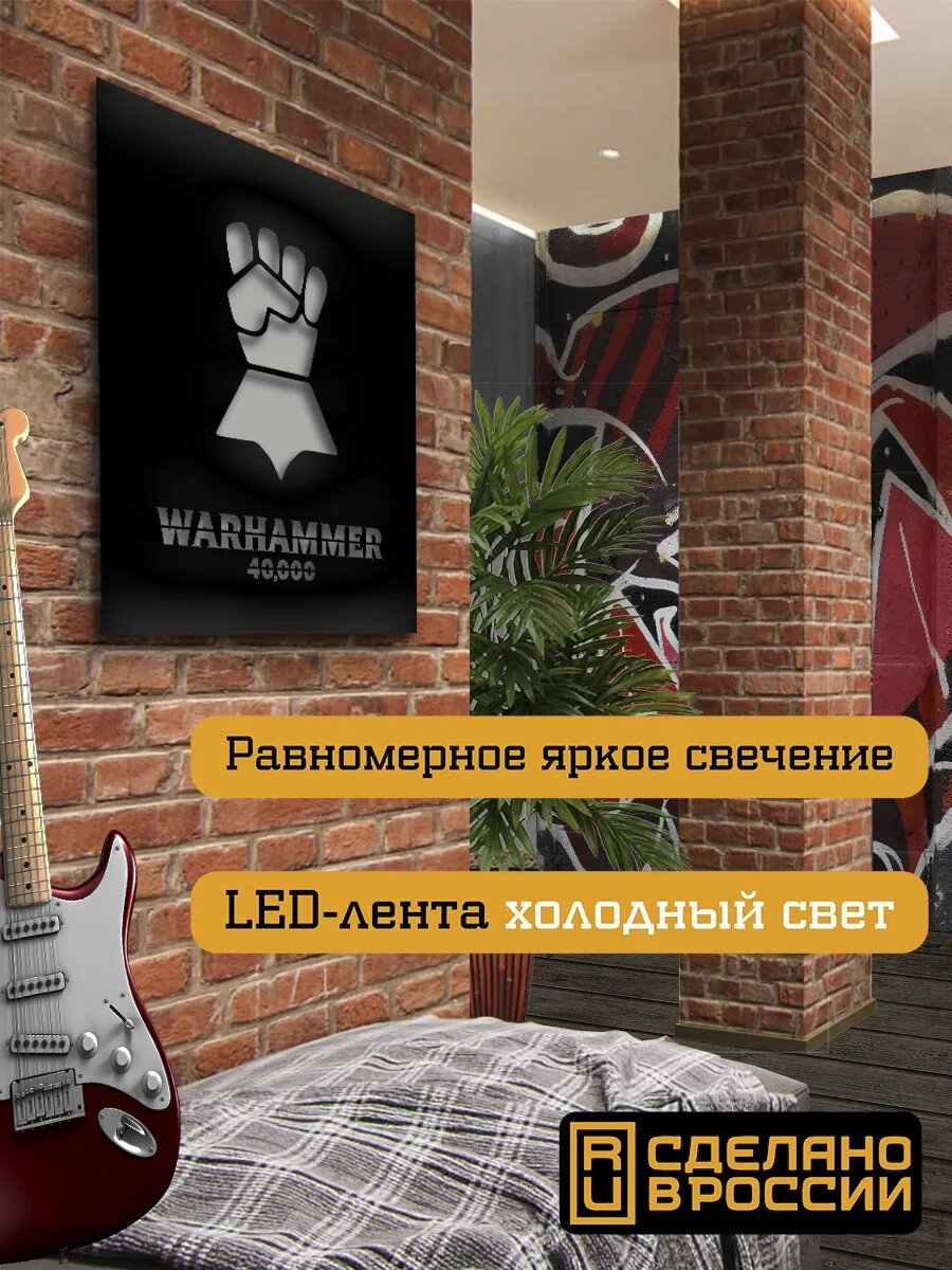 Настенный светильник панно игра Вархаммер 40к (warhammer 40000, орден, космодесант, белые шрамы) - 2905