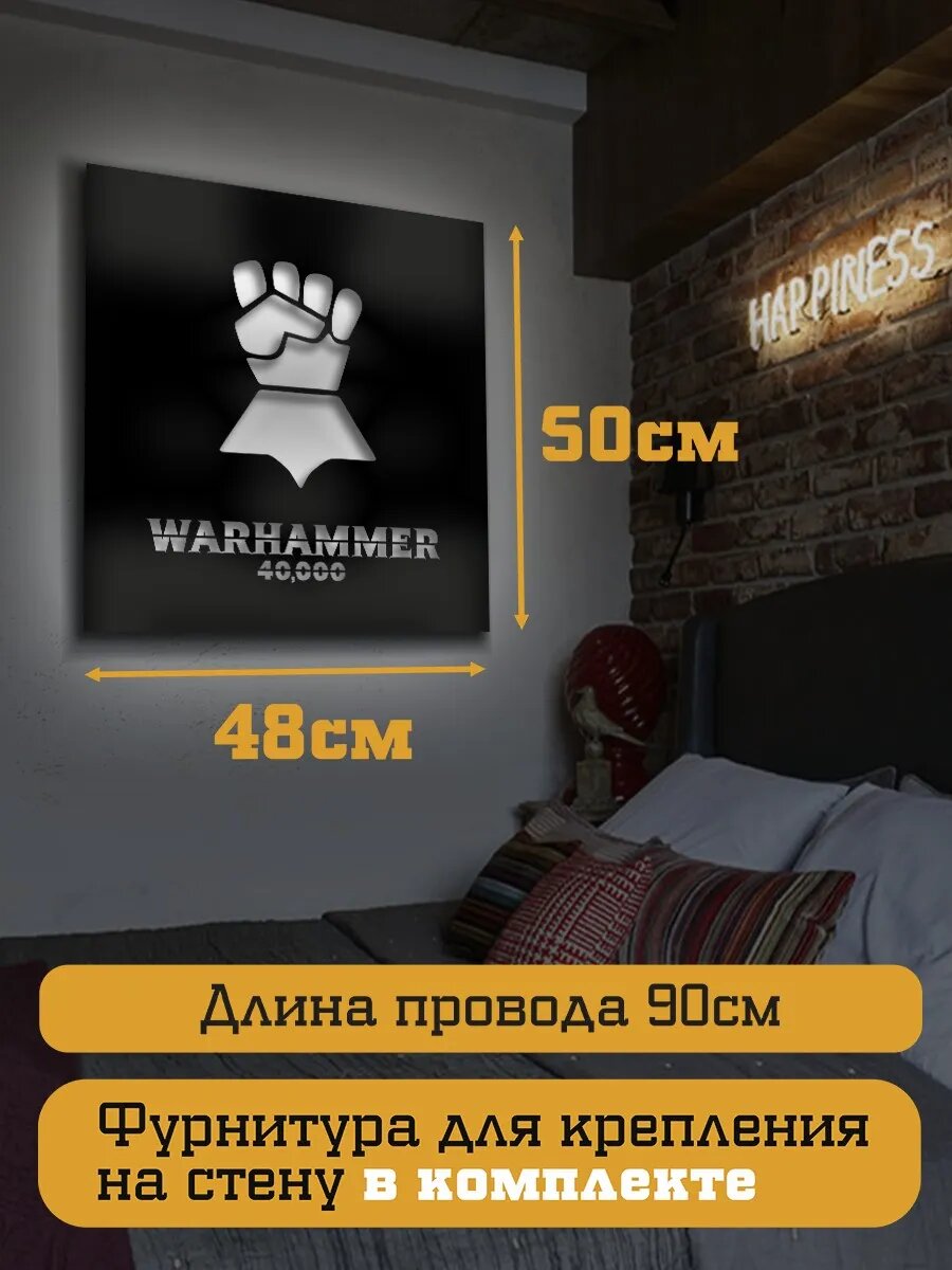 Купить Настенный светильник панно игра Вархаммер 40к (warhammer 40000, эмблема, кулак императора, орден, космодесант) - 2910