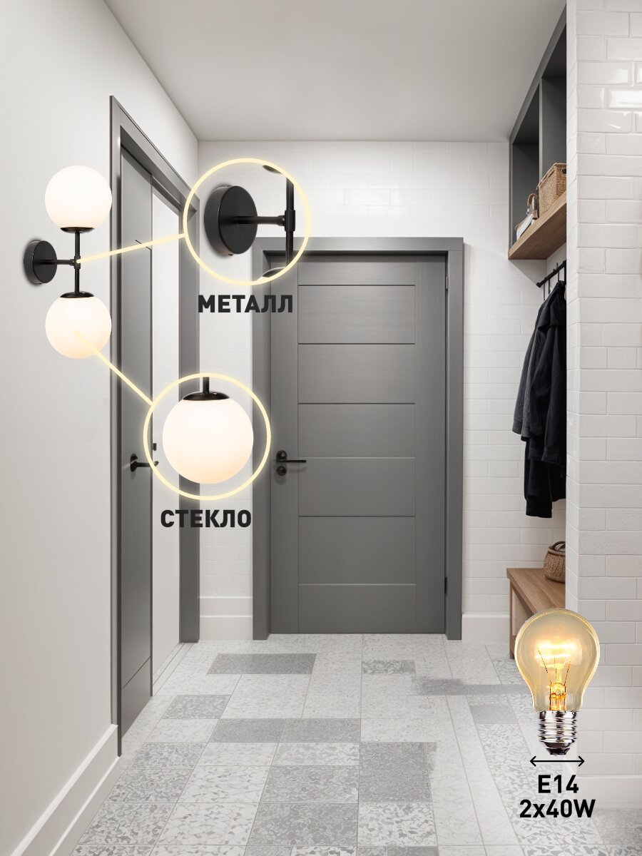 Бра Lamplandia L1616 SHANTI BLACK, Е14*2 макс 40Вт интересное: