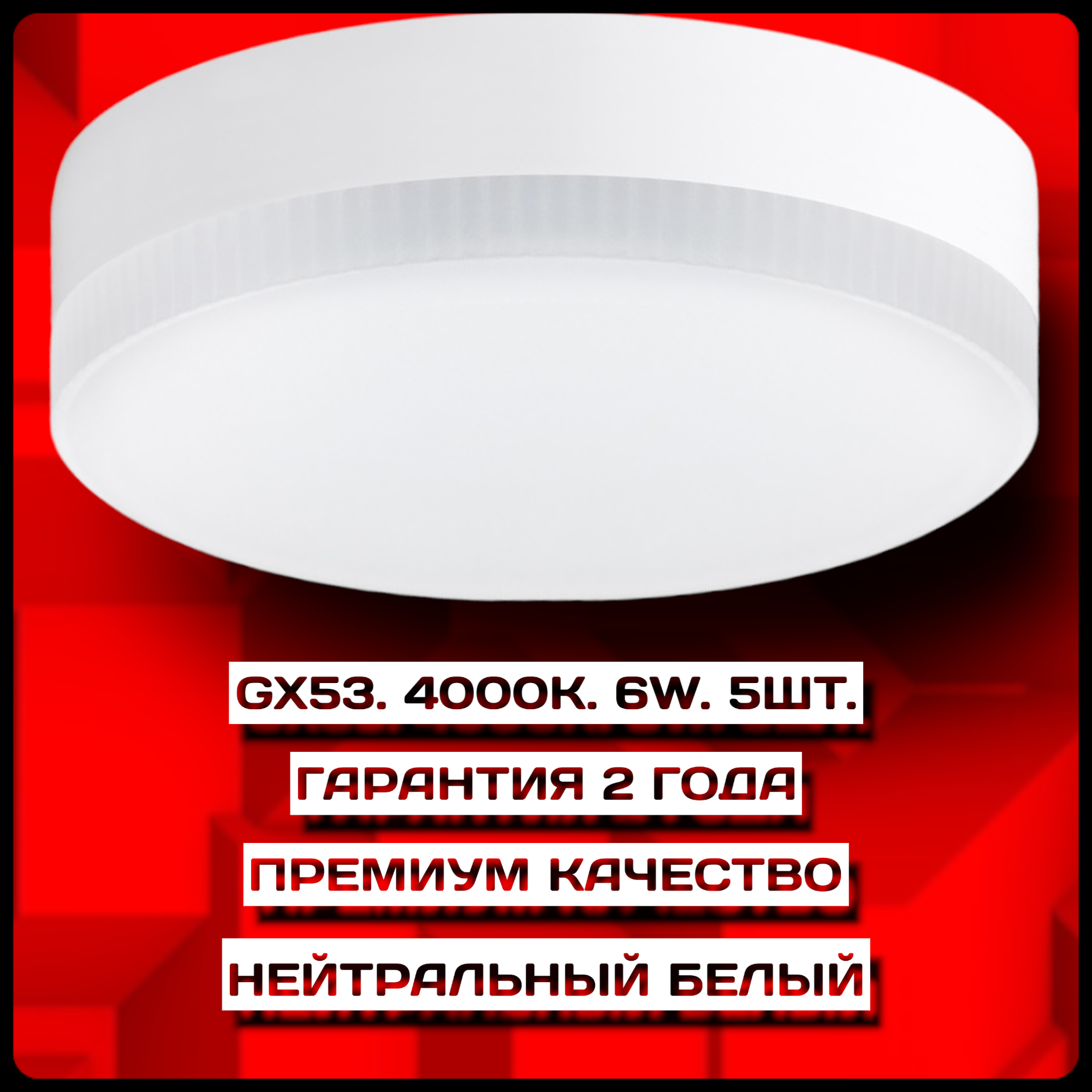 (Цоколь GX53, 6 Ватт, 4000 Кельвин, 5 штук) Лампочки светодиодные, энергосберегающие, без пульсации. LED. интересное: