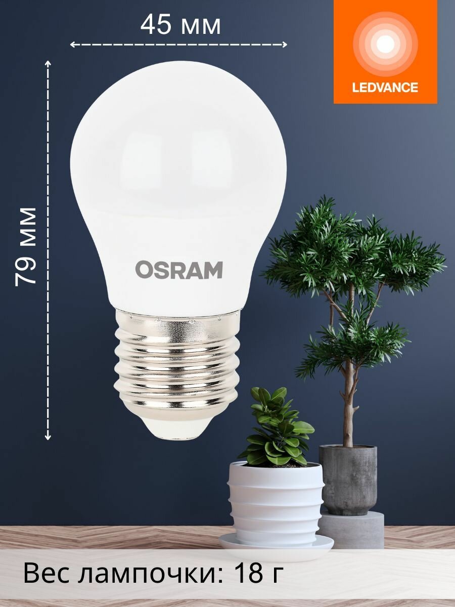 Лампочки светодиодные OSRAM LED STAR, 9Вт, 5 шт в наборе, Е27, 4000К нейтральный белый свет, 806лм, колба Р шар матовая пластик