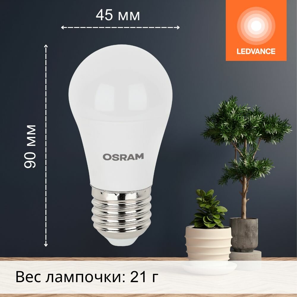 Лампочки светодиодные OSRAM LED STAR, 9Вт, 5 шт в наборе, Е27, 2700К теплый белый свет, 806лм, колба Р шар матовая пластик