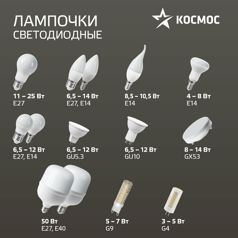 Лампочка Космос LED12wCNE1445, E14, 12Вт дневной белый свет 4500К интересное:
