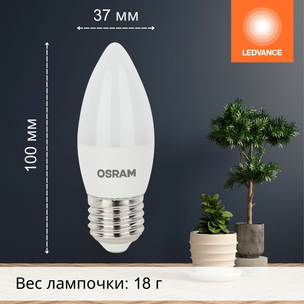 Купить Лампочки светодиодные OSRAM LED STAR, 7Вт, 5 шт в наборе, Е27, 4000К нейтральный белый свет, 600лм, колба В свеча матовая пластик