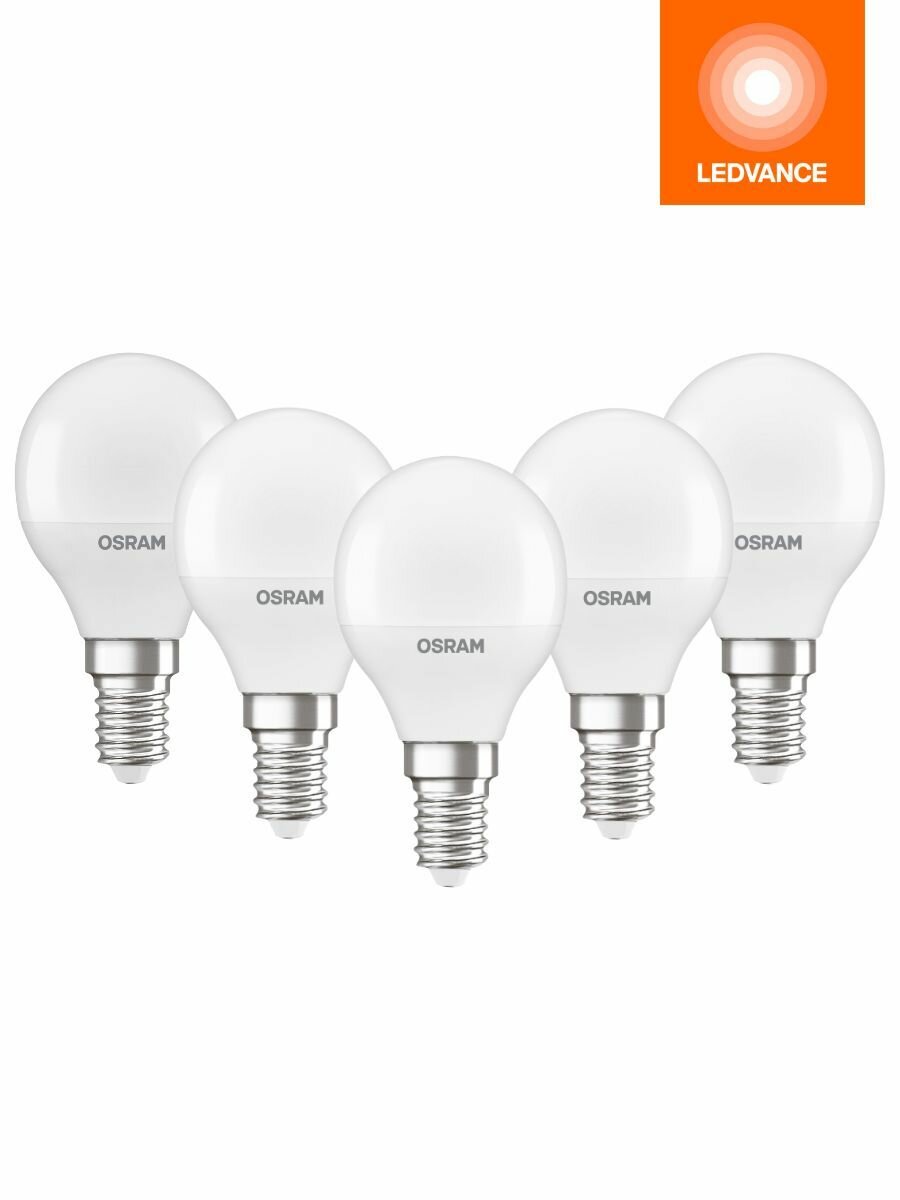 Лампа светодиодная Е14 OSRAM LED STAR, 5 шт, 7Вт, 4000К нейтральный белый свет, 600лм, колба Р60 шар матовая пластик
