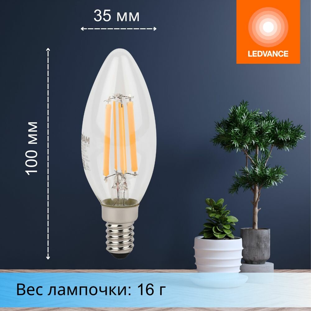 СохранитьЛампочки светодиодные филаментные OSRAM LED STAR, 6Вт, 5 шт в наборе, Е14, 6500К холодный белый свет, 806лм, колба В свеча прозрачная стекло интересное: