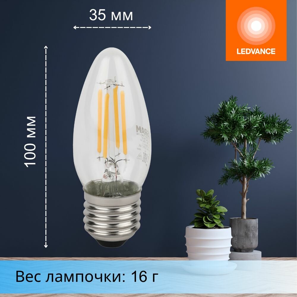 Е27 филаментная лампа OSRAM LED STAR, 5 шт, 5Вт, 4000К нейтральный белый свет, 600лм, колба В60 свеча прозрачная стекло