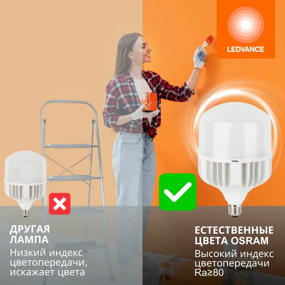 СохранитьМощная лампа 55Вт OSRAM LED STAR HW, Е27 (+ цоколь Е40), 4000К нейтральный свет, 6500лм, колба Т матовая пластик интересное: