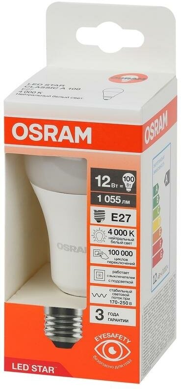Сохранить10шт/уп. Лампа LED Груша 12Вт 170-250V E27 1055Лм 4000К Угол 180 град. D-60mm L-120mm Свет Дневной белый OSRAM, уп. 10шт интересное: