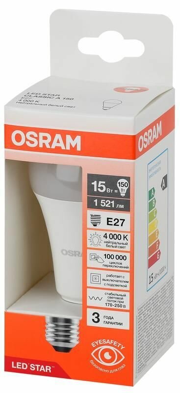 Сохранить5шт/уп. Лампа LED Груша 15Вт 170-250В E27 1521Лм 4000К Угол 180 град. d 60mm h 125mm Свет Дневной белый Osram, уп. 5шт интересное: