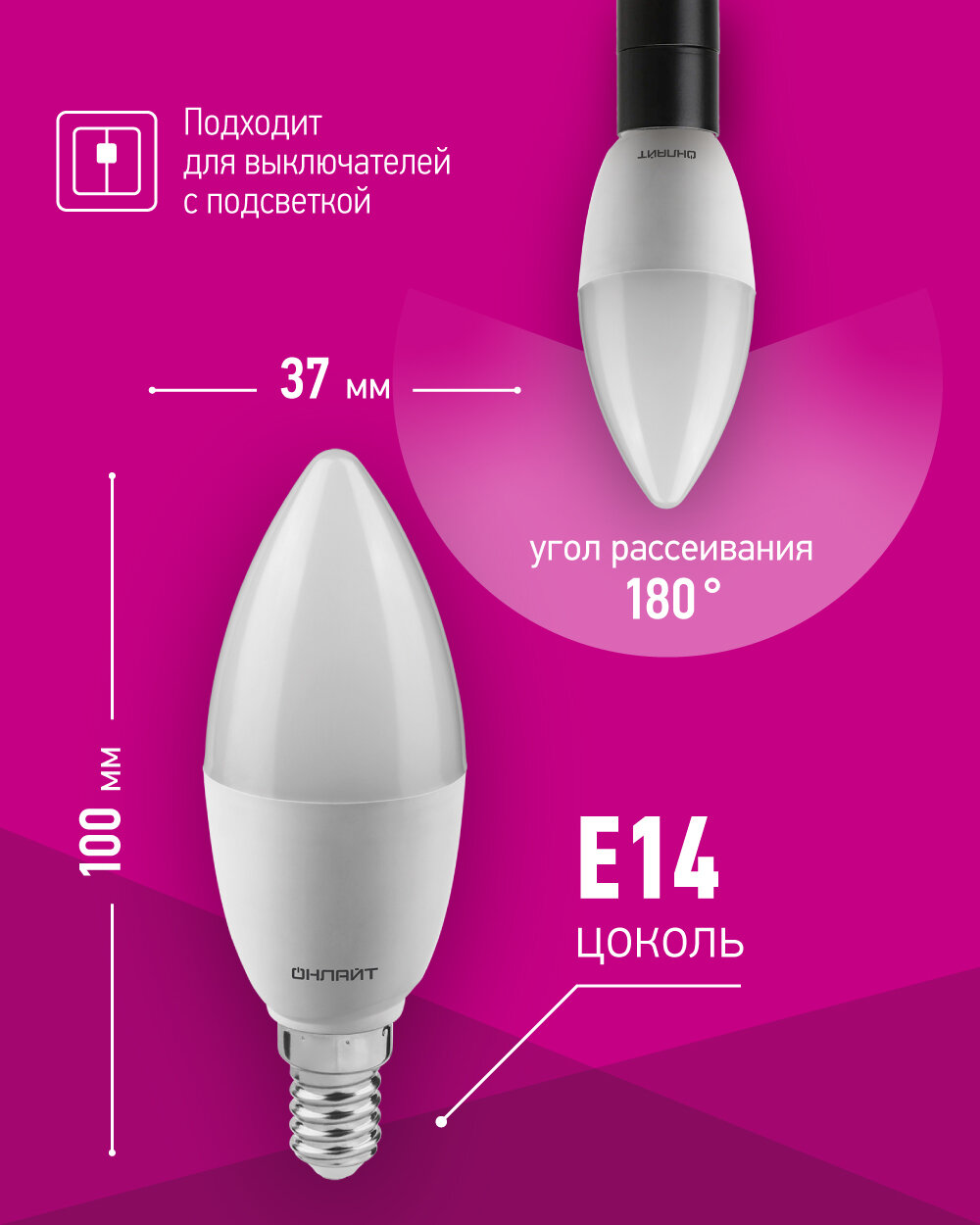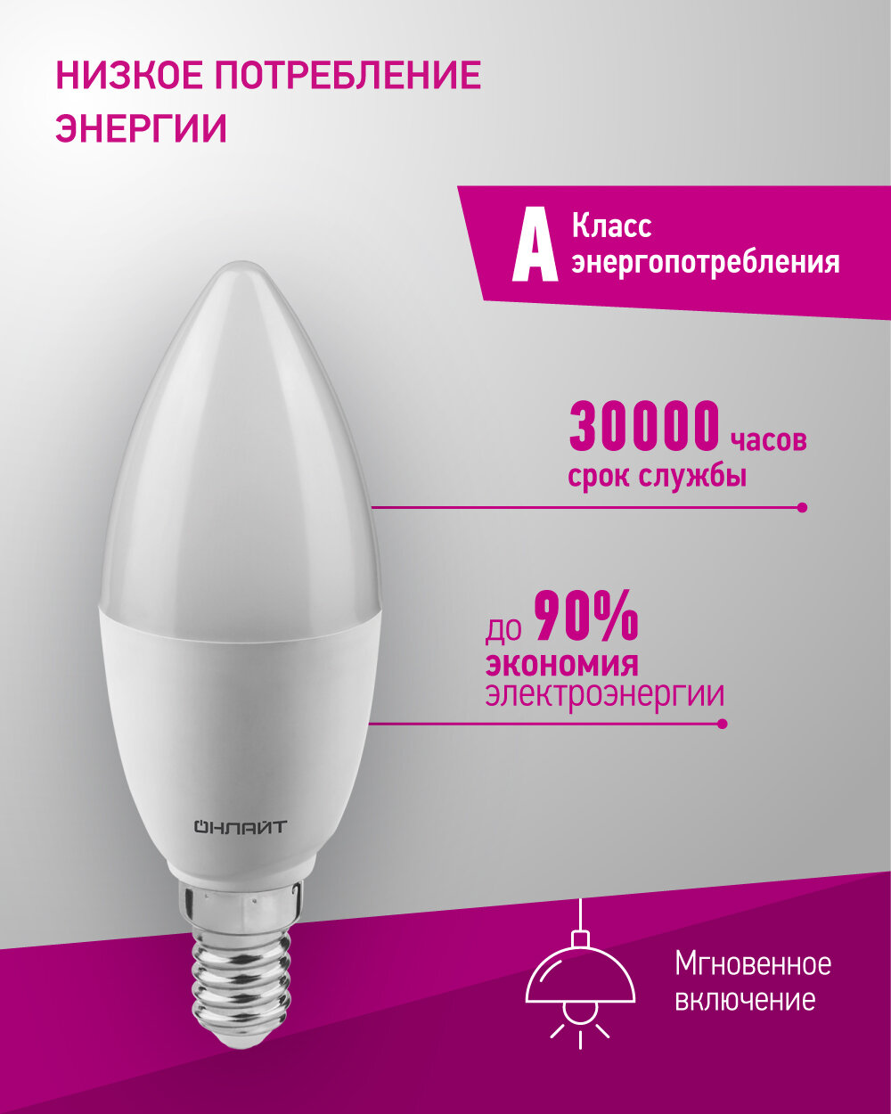 Лампа светодиодная онлайт 61 958, 10 Вт, Е14 свеча, холодный свет 6500К, упаковка 10 шт. интересное: