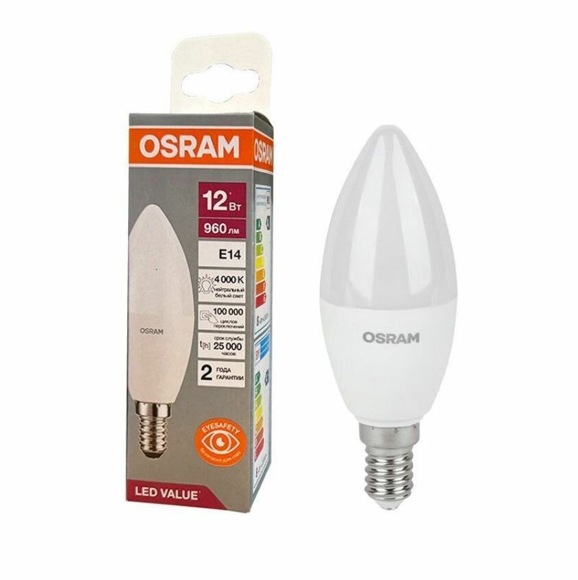 10шт/уп. LED Свеча 12Вт E14 220-240В 960Лм 4000К Свет Дневной белый 113х37мм OSRAM, уп. 10шт