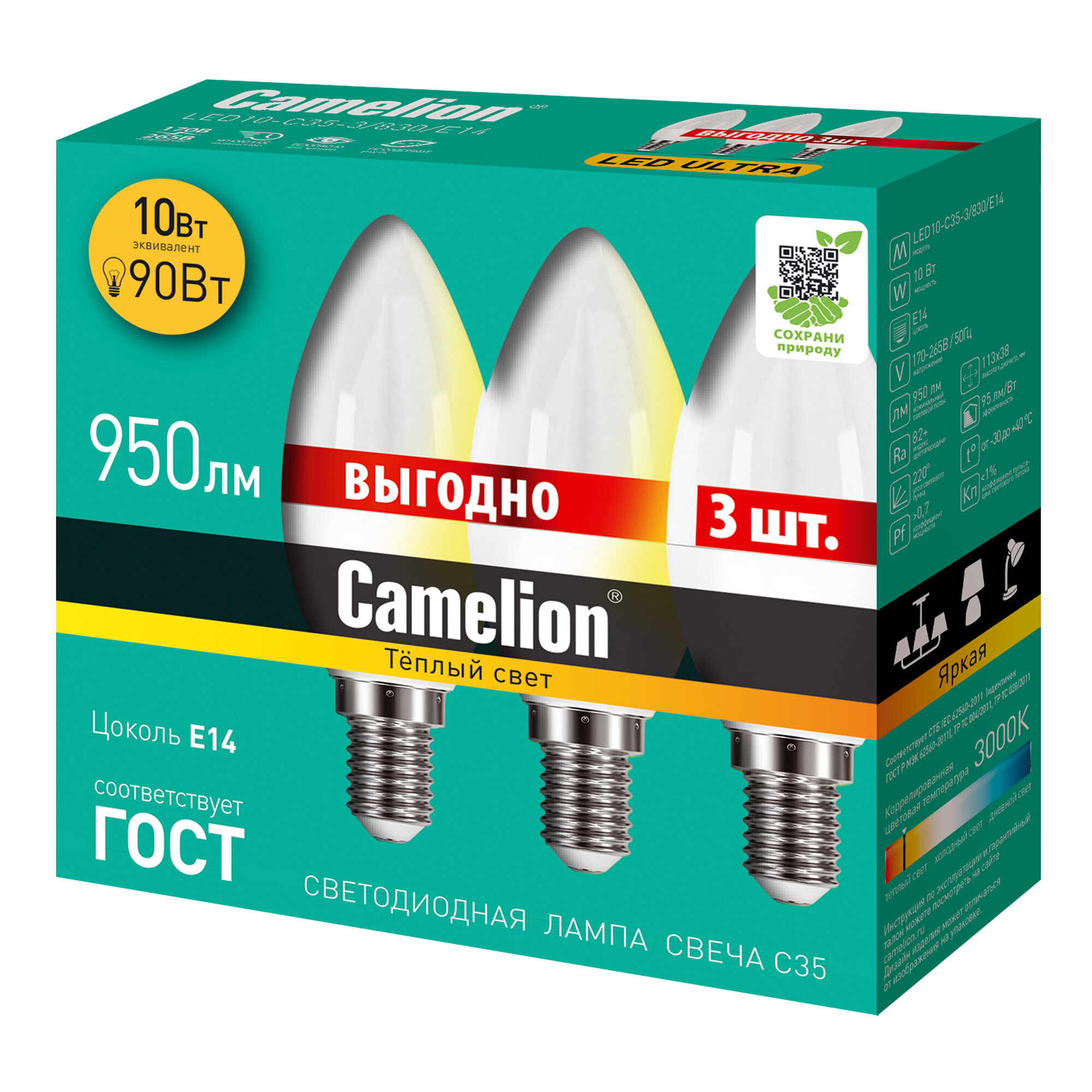 Купить Лампочка светодиодная Camelion LED10 E14 830 промо 3 штуки в упаковке