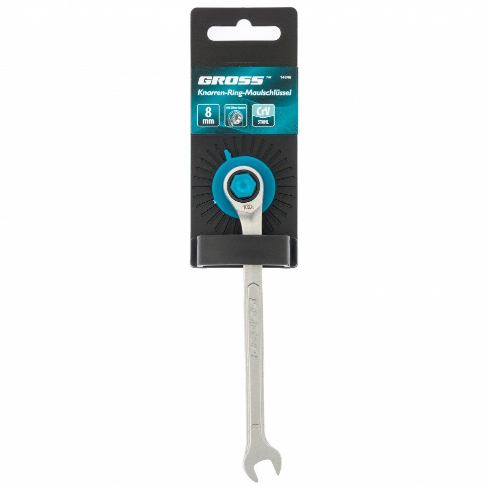 Ключ комбинированный трещоточный, 8 мм, количество зубьев 100 Gross 14846 интересное: