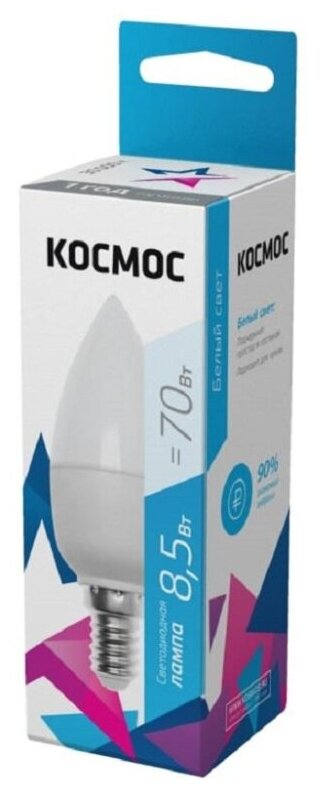 5 шт Лампа светодиодная КОСМОС Basic CN 4500K, E14, 8.5 Вт, 4500 К интересное: