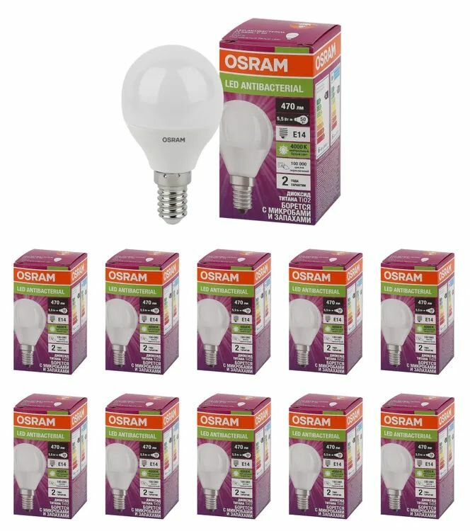 Лампа светодиодная 5,5Вт Е14 4000К шар матовый Osram комплект 10шт интересное: