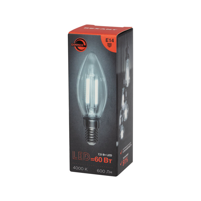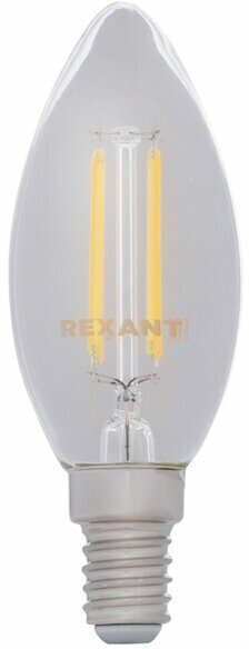 Лампа филаментная Rexant Свеча CN35, 7.5 Вт, 600 Лм, 4000K, E14 диммируемая, в прозрачной колбе интересное: